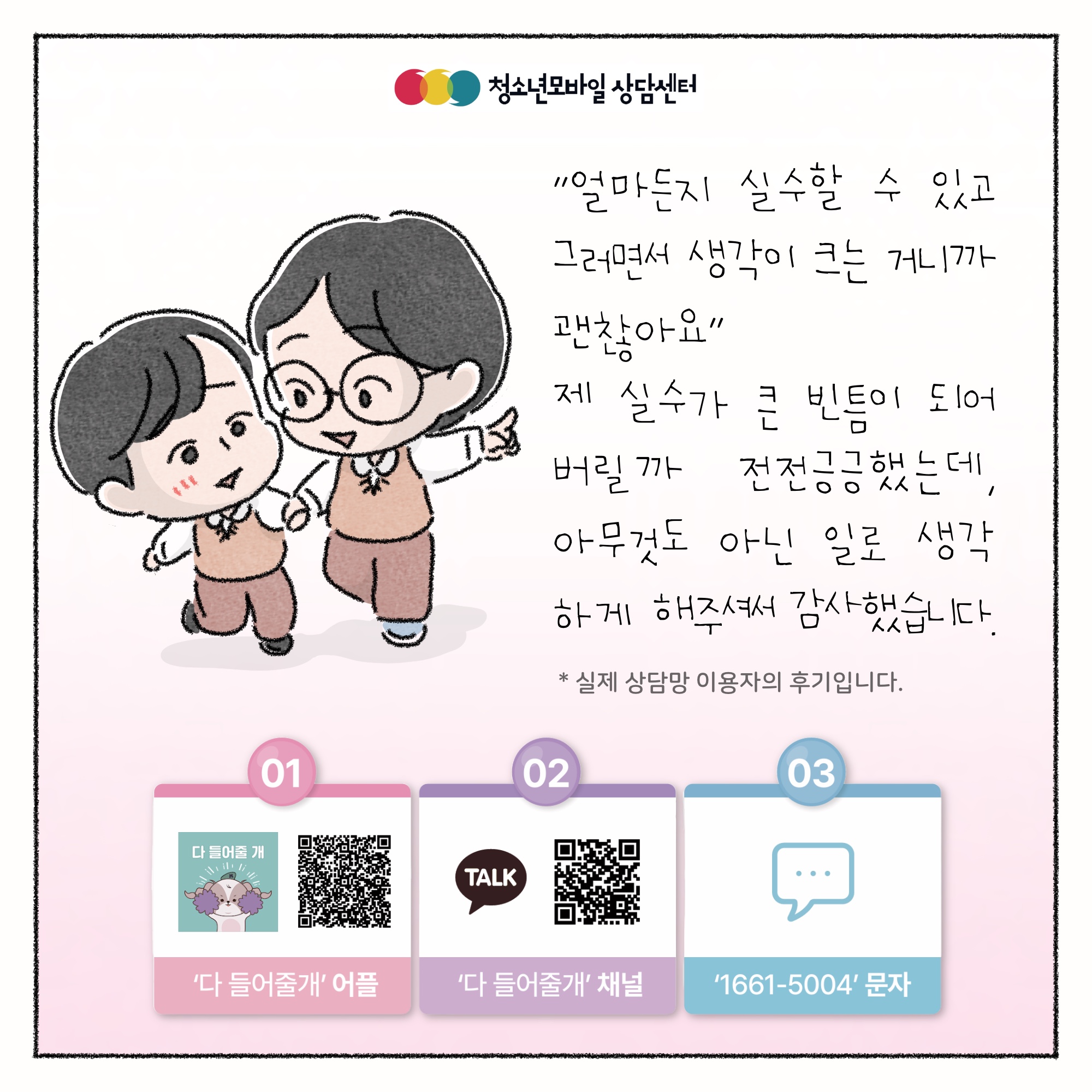 청소년모바일상담센터에서 제작한 청소년 정신건강 관련