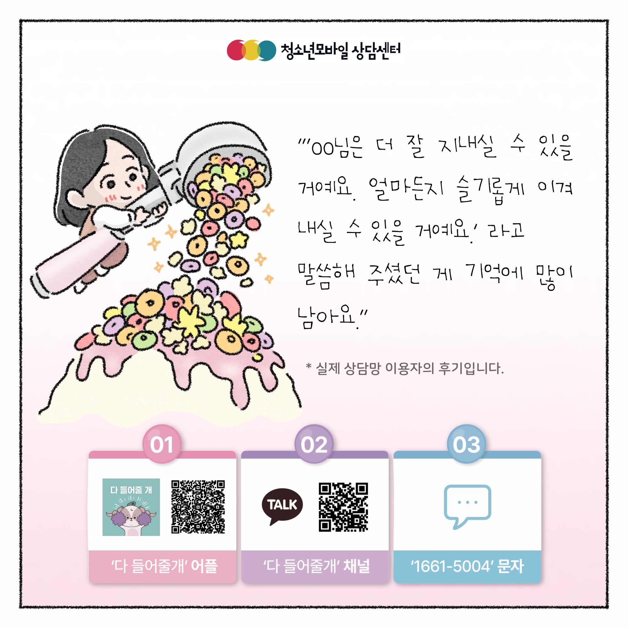 청소년모바일상담센터에서 제작한 청소년 정신건강 관련 웹툰을 볼 수 있습니다.