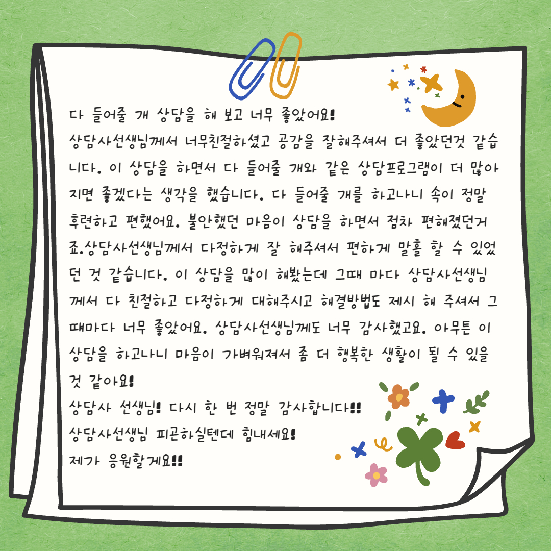'다 들어줄 개' 상담 후기 공모 우수 후기(3)