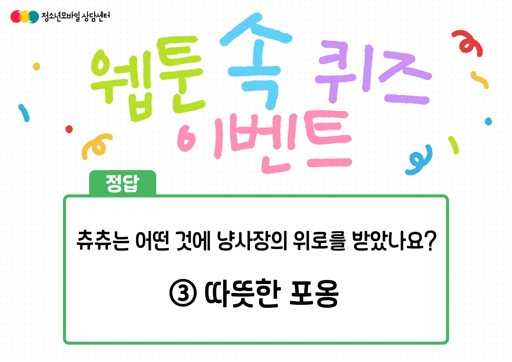 이번에 저희 센터에서 진행한 웹툰 속 퀴즈 이벤트에 많은 관심과 참여에 감사드립니다.